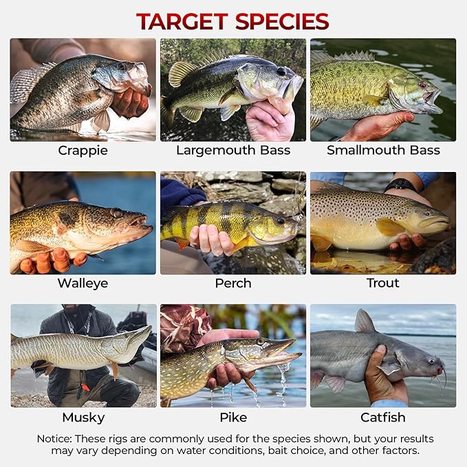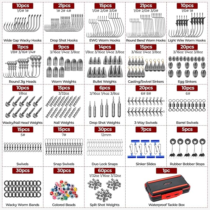 - Build 19+ Proven Rigs With Confidence: This all-in-one kit includes hooks, swivels, sinker stops, bobber stoppers, and more, allowing anglers to create over 19 of the most effective freshwater rigs like Texas Rig, Carolina Rig, Wacky Rig, and Drop Shot. Perfect for targeting bass, trout, crappie, and other species in any fishing scenario.